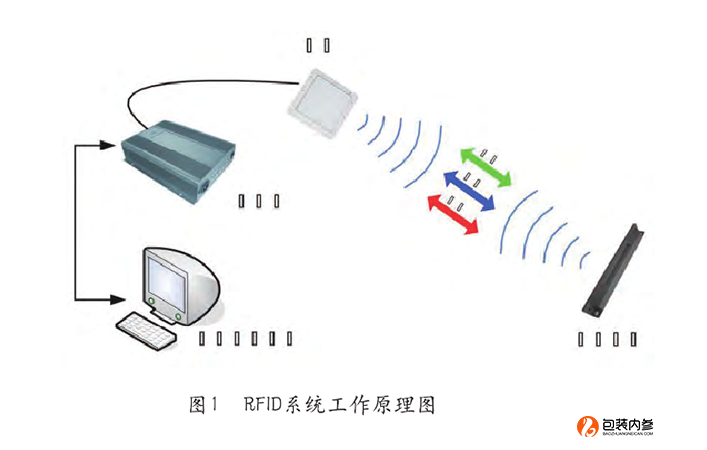 上位机发送指令使读写器工作,读写通过天线发送射频信号,电子标签接收到射频信号后,转化为电流,供芯片工作,读出内部所储存的数据,经调制后发送出去;天线接收标签反馈的信息并送至读写器,经解调后还原出标签数据,发送给上位机进行处理。