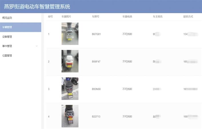 “燕罗电动车管理”程序后台。