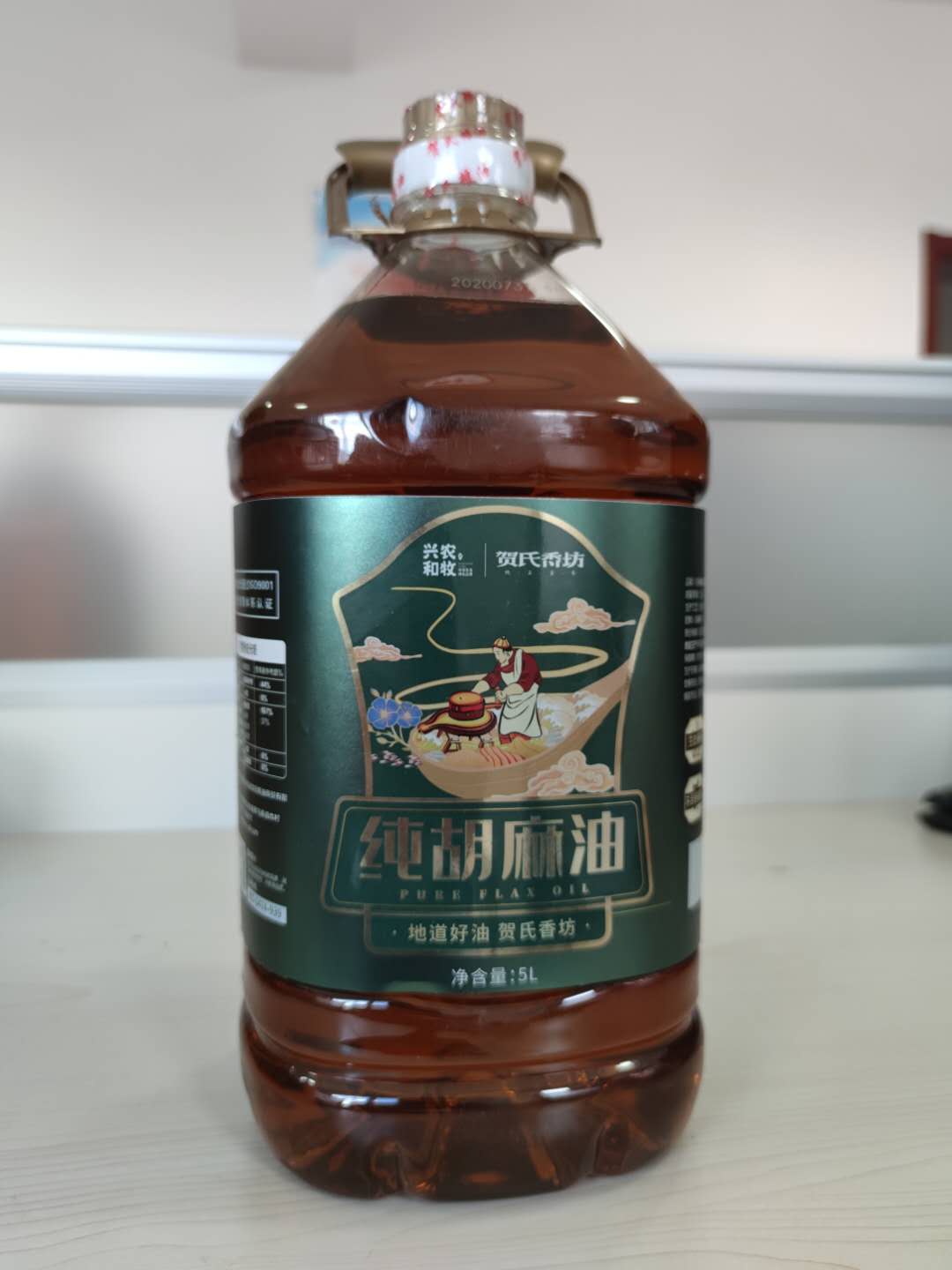 依托电商中心提供的品牌建设优势,“贺氏香坊”预更新品牌包装,设计制作了五款胡麻油瓶身标签,以插画风体现品牌特性,凸显古法压榨特质,冠以“兴农和牧”+“贺氏香坊”双品牌LOGO标识,以区域公用品牌为企业品牌背书,帮助产品更快进入市场,打消消费者顾虑,增加企业品牌的可信度,一方面最大限度地在传承与创新中找到了平衡,让品牌形象更符合当代年轻人的审美,另一方面也尽可能保证了品牌在广大消费者心中的认知度,不会妨碍品牌传达信息,同时也能缩减消费者购买的决策时间,帮助企业打开市场。