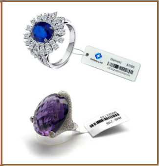 珠宝标签首要是做成PVC或者PET吊牌,悬挂于珠宝之上,用于存储珠宝的信息,包括珠宝的名称、种类、类型等。