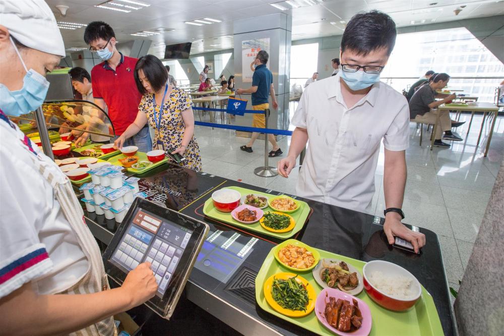 上海电信公司职工食堂用上“智慧餐盘”,用大数据手段,对最滞销的菜品进行末尾淘汰。费锋摄
