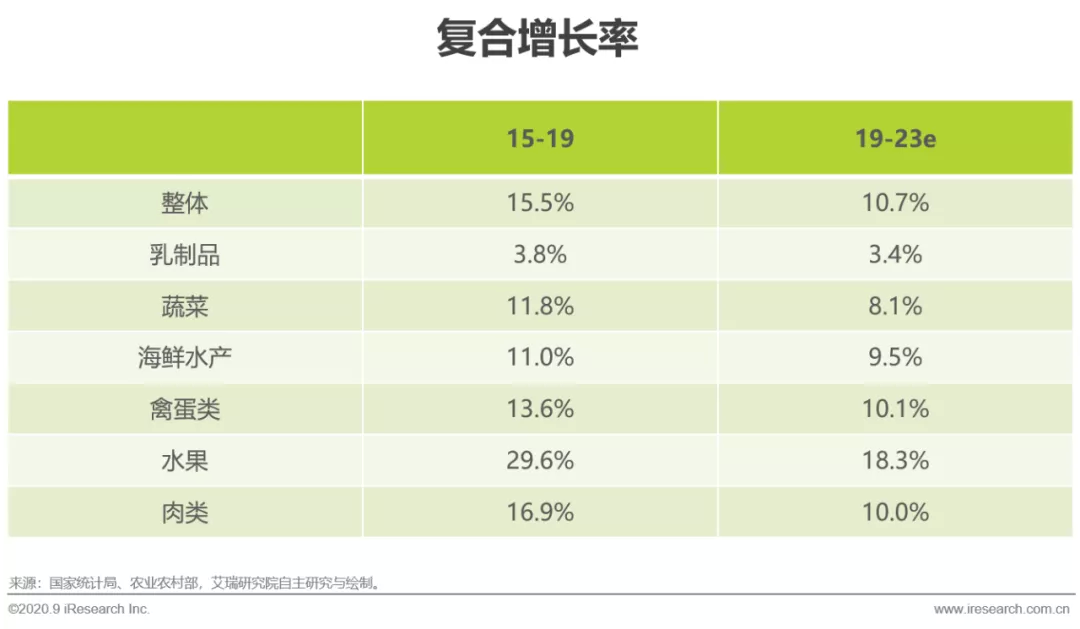 农业作为供应链最源头的供给端,提供了肉禽、蔬菜、水果、海鲜等生鲜产品。生鲜产品具有鲜活易腐、不耐贮运、生产季节性强、消费弹性系数小等特点。随着生鲜供应链的逐渐成熟,生鲜产品的运输季节、地域限制被克服。